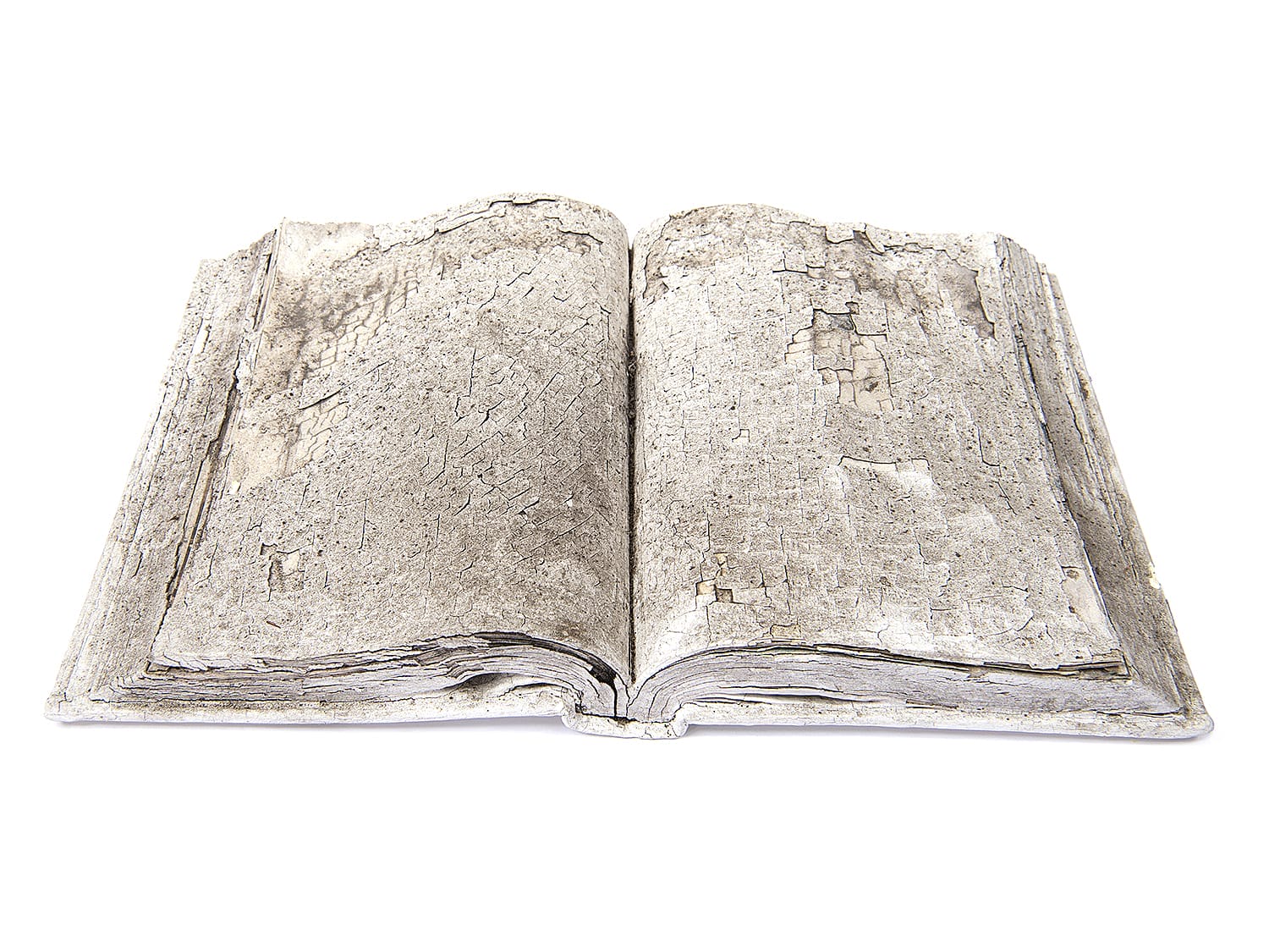 An exhibition of a ten volume set of encyclopedias turned into art objects by first painting them pure white. After exhibiting them a few times these were put outside in the garden where they were left for several decades.