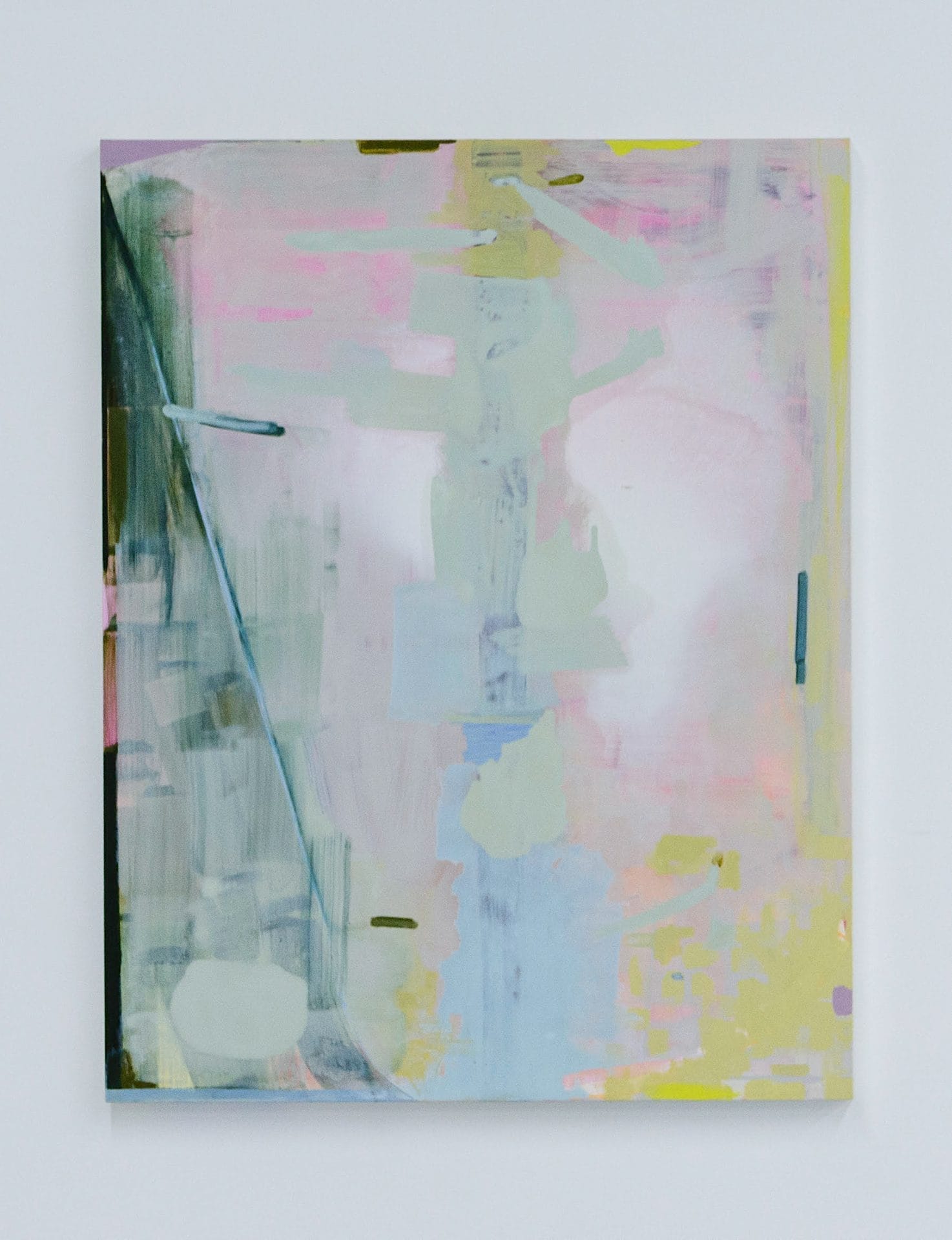 Elizabeth Leach Gallery is pleased to present Michelle Ross, Never an Even Folding, an exhibition of new, exuberant paintings which continue to refine her particular abstract language concerned with such notions as field and particle, dichotomous color schemes, and the treacherous poetry intrinsic to the project of abstract painting. Diptychs take center stage, extending her fascination with codependency, doubling, and the kind of imperfect symmetry reminiscent of a Rorschach card. This compositional device is used to graduate differences and create porous boundaries between competing or varied formal strategies. Within these paintings, Ross gives careful attention to edges, evidence of a real-time editing process akin to a photographer’s search for composition in a darkroom. But here, revealing the very deletions end up uniting, rather than dividing, fields of color, often sourced from a vast collection of paper scraps and color mixing notebooks.