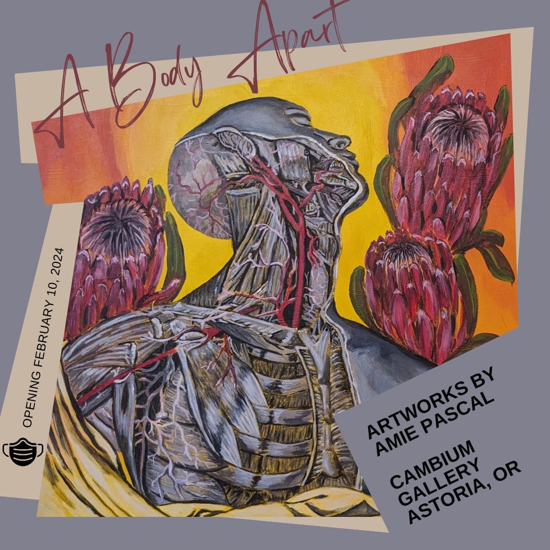 Pascal’s series ‘A Body Apart’ will be exhibited February 10 – March 4, 2024 at Cambium Gallery (1030 Duane St, Astoria, OR).